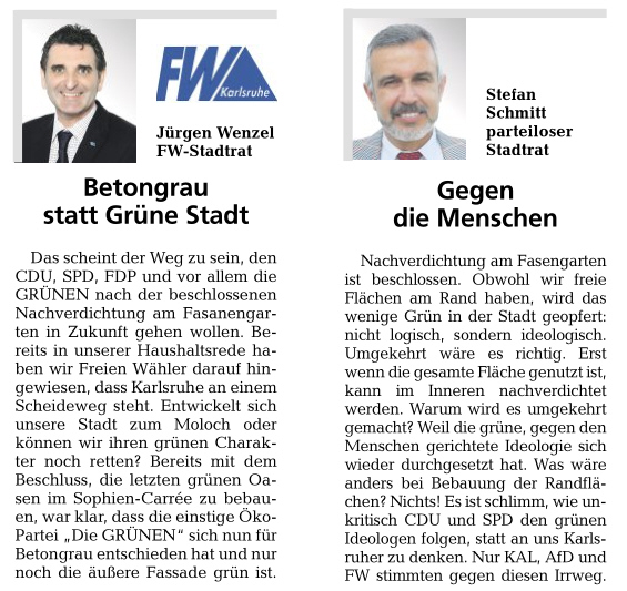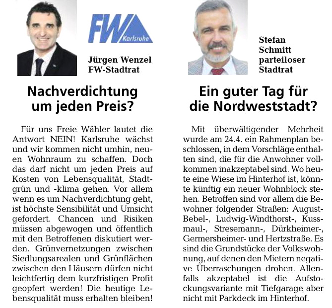 Keine Nachverdichtung durch Neubauten auf Grünflächen zwischen bestehenden Häusern in der Karlsruher Nordweststadt |